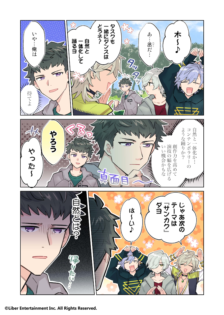 CLOSE 2026.01.07 第436話『考えるな、感じろ!』 皆さま、あらためて本年もよろしくお願いします! さて、年明けのみんなはどんな日々を……と思いきや、なんだか独自の稽古(?)をしている様子。 丞くん、Don’t think, feelですよ! サンカクを踊れるようになったとき、きっと役者として一皮むけるはず……たぶん。きっと。(By.MANKAI桜子) 関連キャラクター シトロン向坂 椋斑鳩 三角高遠 丞 CLOSE