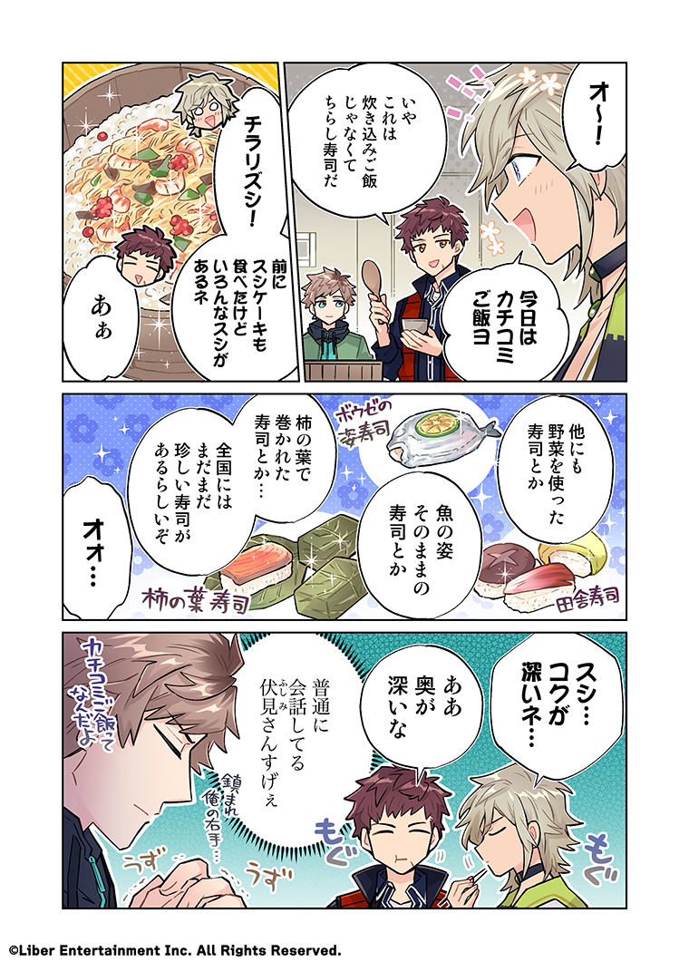 いやほんとに臣くんすごい。もっと言えばツッコミを我慢できている綴くんもすごい。もしここに左京さんがいれば「カチコミご飯」に全力でツッコミを入れてくれるはずですが……!それにしてもこういう、日常にさらっと紛れ込むシトロンくんの言い間違いシリーズ大好きです。語録をつくってほしい(By.MANKAI桜子)